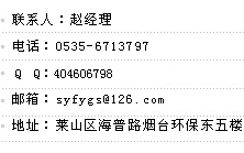 聯系人:趙經理 電話:0535-6713797 傳真:0535-6713797